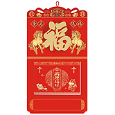 - 特度對(duì)開中國紅金雕窗花掛歷